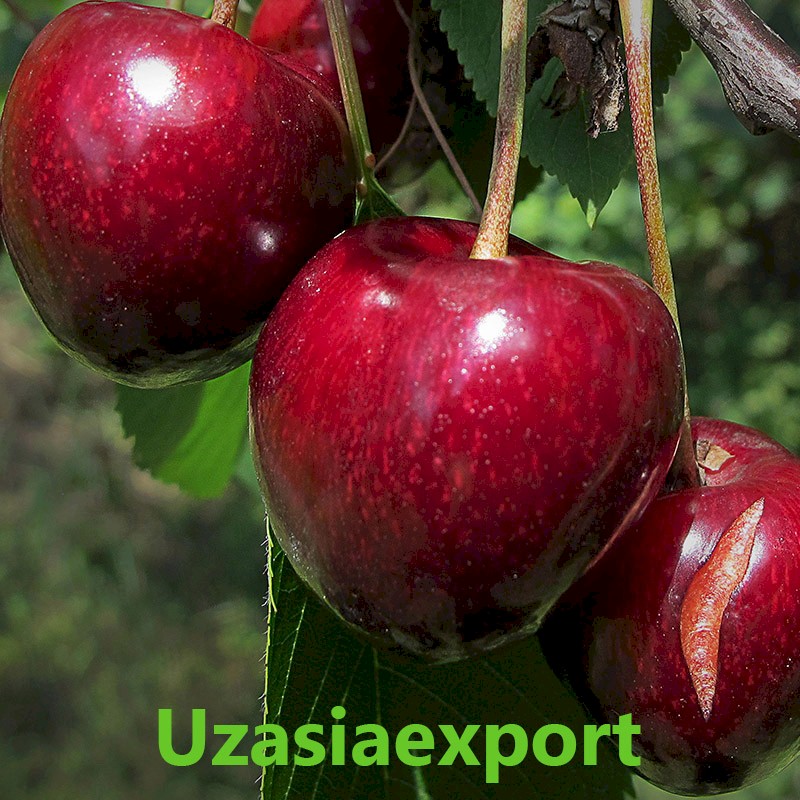 Description: Its tree grows strongly, broadly pyramidal-branched. The leaves are large, oblong-avoid. The flowers are white, diameter – 39 mm, 5-6 crowned petals, size 17-16 mm, broadly ovoid, heart-shaped, its top is round. The bast is difficult to separate, dark red. The core is red, ripe and juicy, its sugar content is high, the acidity is average. Chemical composition of fruit: dry matter – 22,3 %, total sugar content – 11,74%, titratable acid – 1,0 ml/g. Vitamin C (ascorbic acid) – 3,74 mg/%. Moderately separated from the kernel of the seed, light cream color, size – 9-8-7 mm, weight – 0.53 g. Fruit band – 47 mm, clinging tightly to the fruit, flowering period is 8-17 th April.